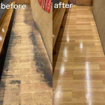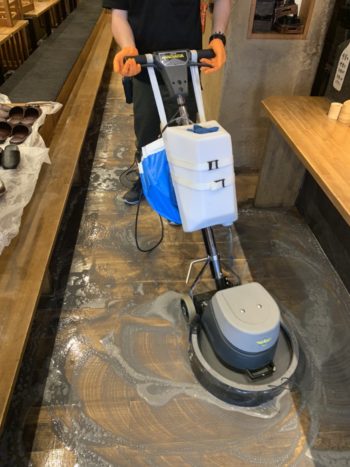 本日は滋賀県草津市で飲食店様の床面洗浄ワックス作業を行いました。
