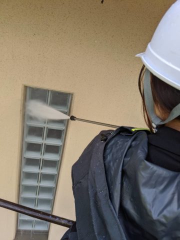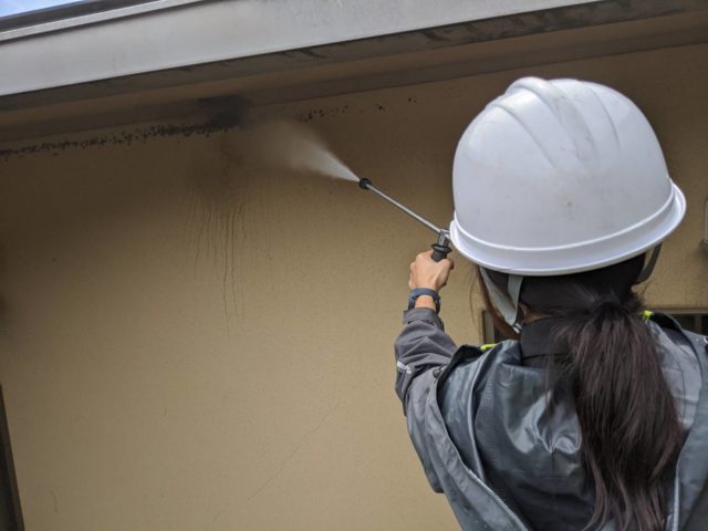 高圧洗浄で落とせない汚れは、外壁専用の薬品を使用して洗浄を行います。